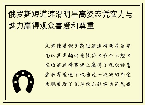 俄罗斯短道速滑明星高姿态凭实力与魅力赢得观众喜爱和尊重